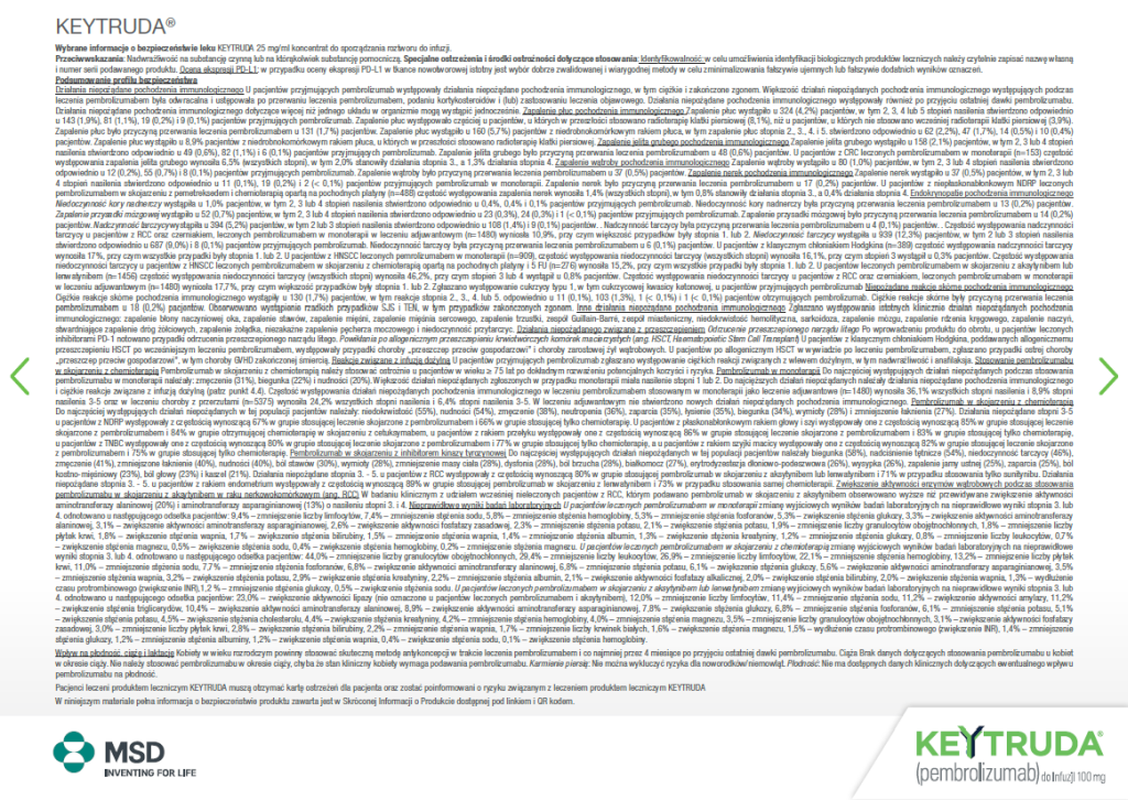 Wybrane informacje o bezpieczeństwie leku KEYTRUDA 25 mg/ml koncentrat do sporządzania roztworu do infuzji.