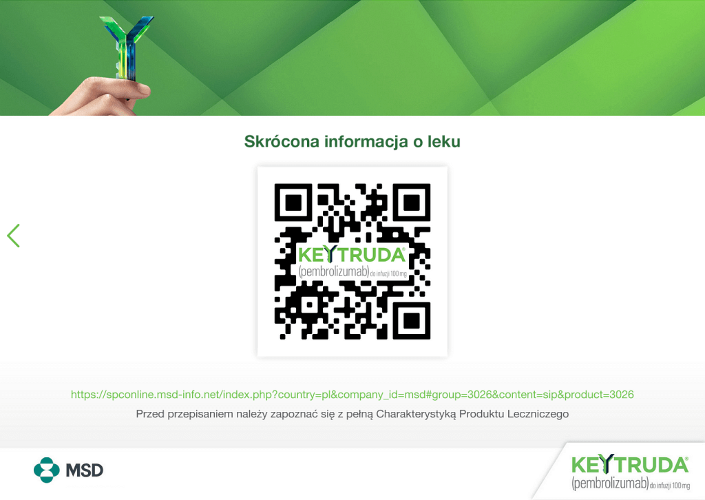 Pacjenci leczeni produktem leczniczym KEYTRUDA muszą otrzymać kartę dla pacjenta oraz zostać poinformowani o ryzyku związanym z leczeniem produktem leczniczym KEYTRUDA